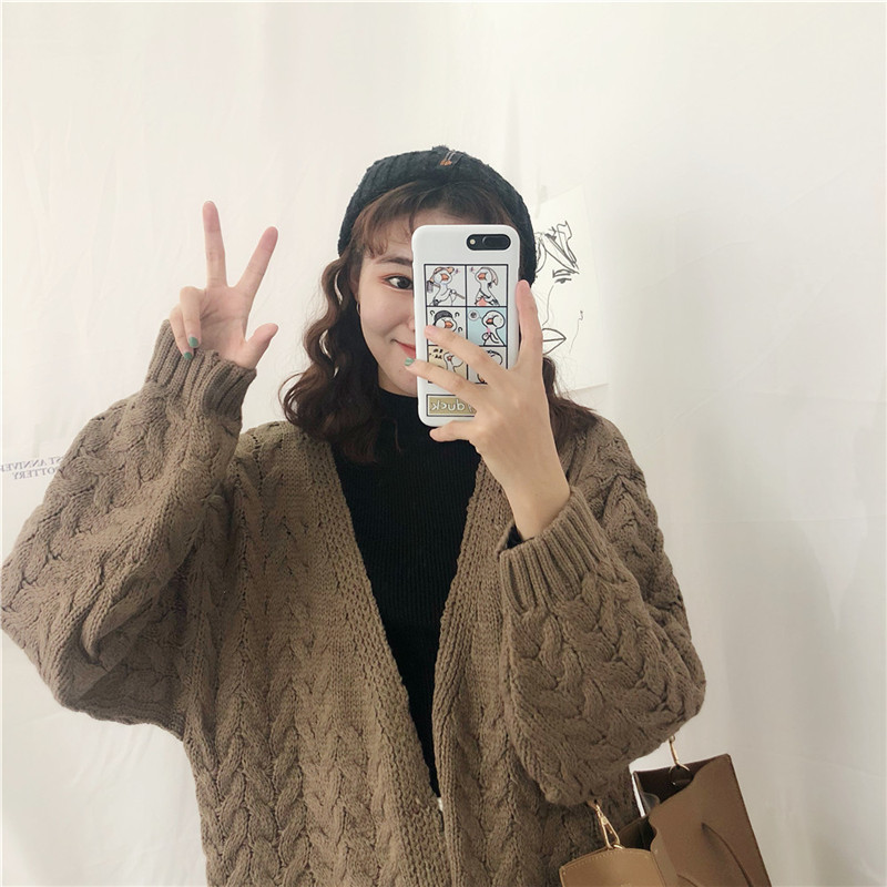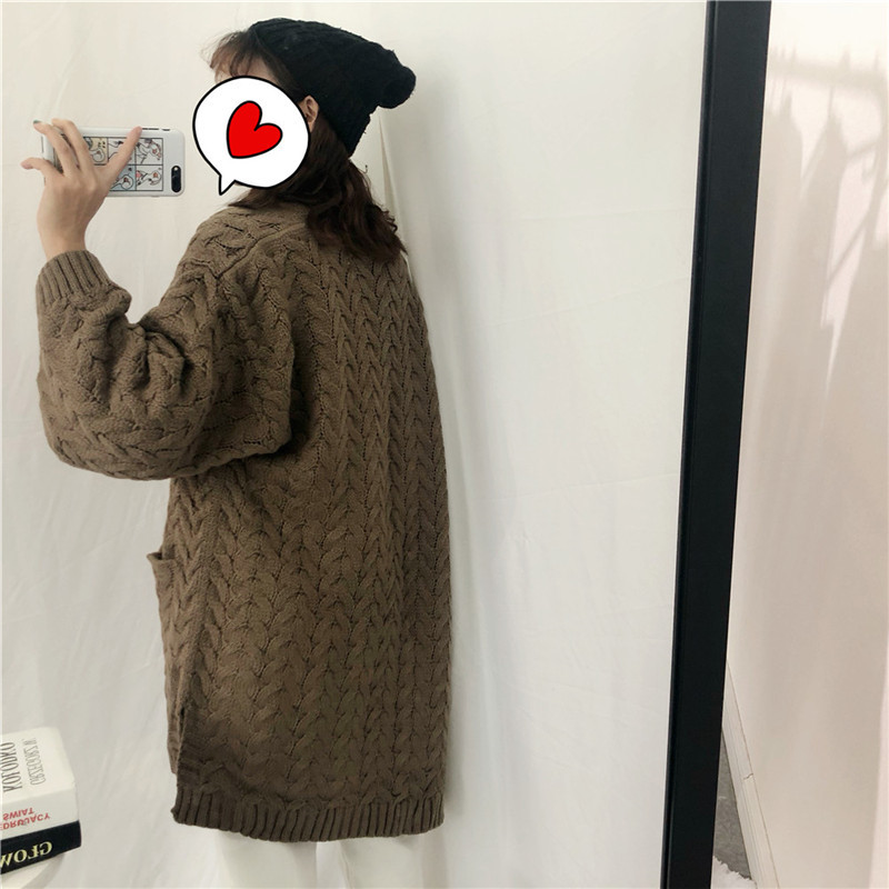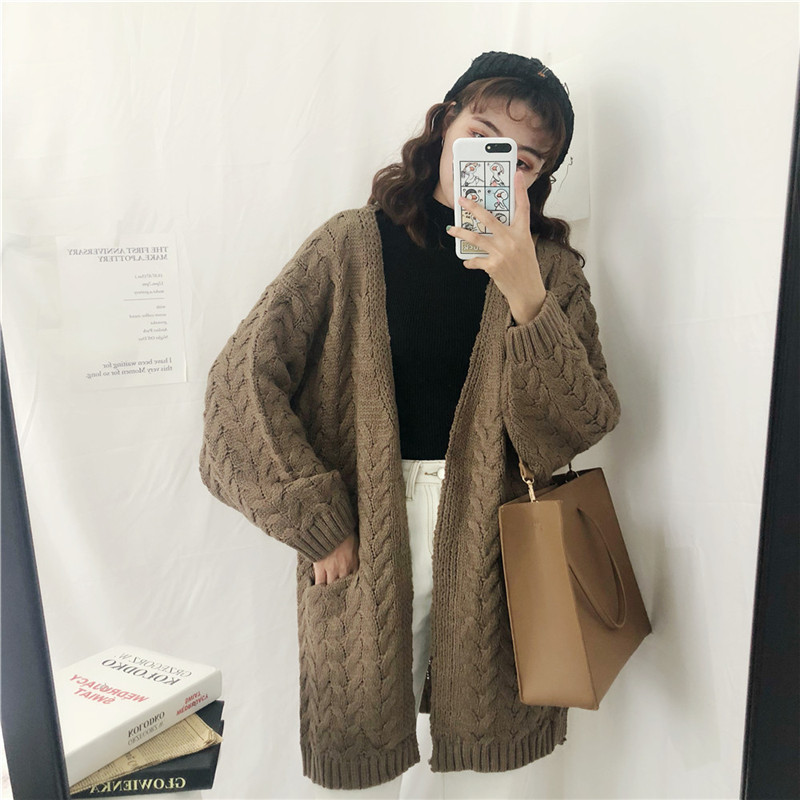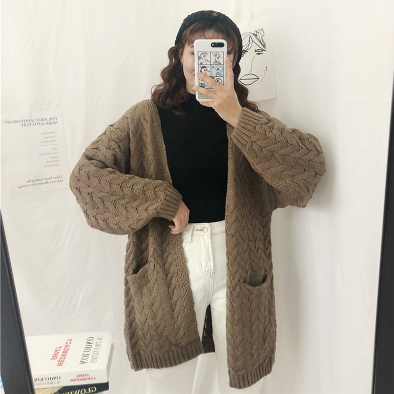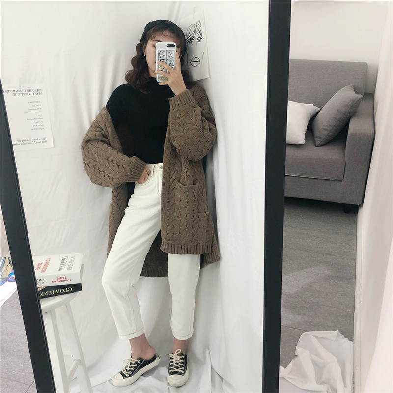 肩の落ちたゆるっとしたデザインと太目のロープ編みでこなれたオシャレ雰囲気に。