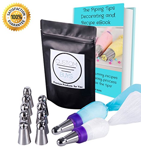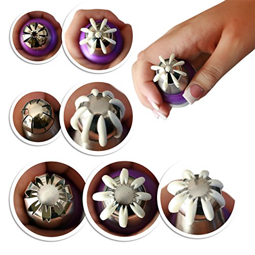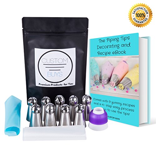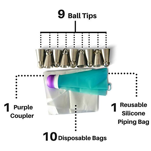 - ✅ EVERYTHING YOU NEED – (9) Best Selling Russian Ball Tips + (1) Purple Coupler + (1) Reusable Silicone Pastry Bag + (10) Disposable Pastry Bags + BONUS (1) eBook Step-by-Step Guide on How To Use Tips and 9 Yummy Recipes for baking! (eBook will be sent to your email after purchase)