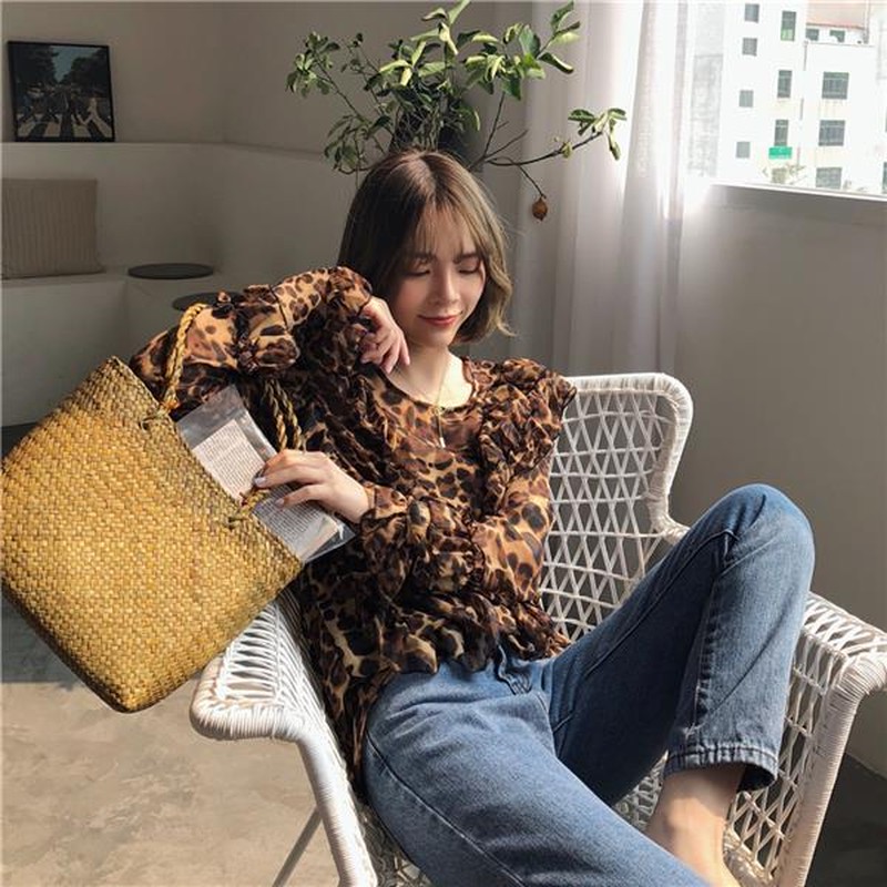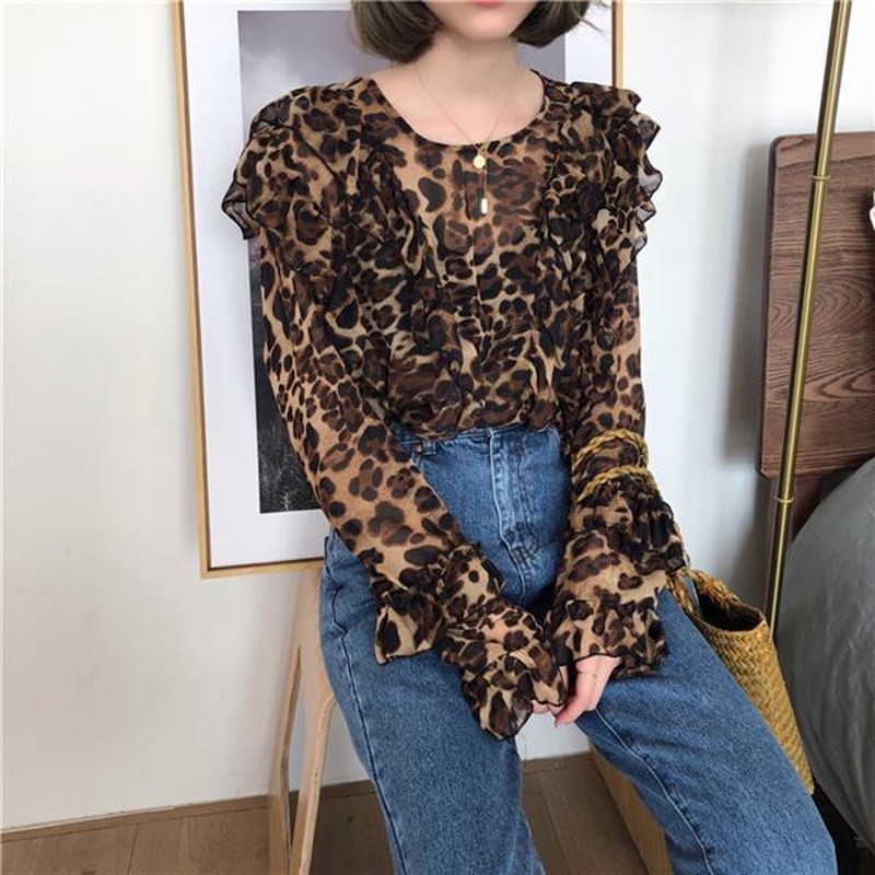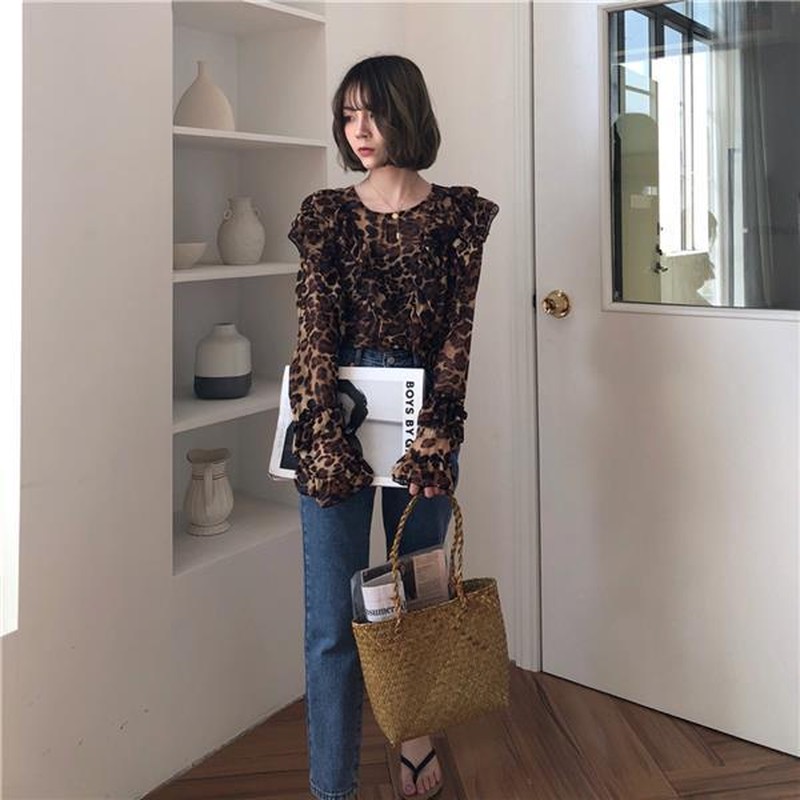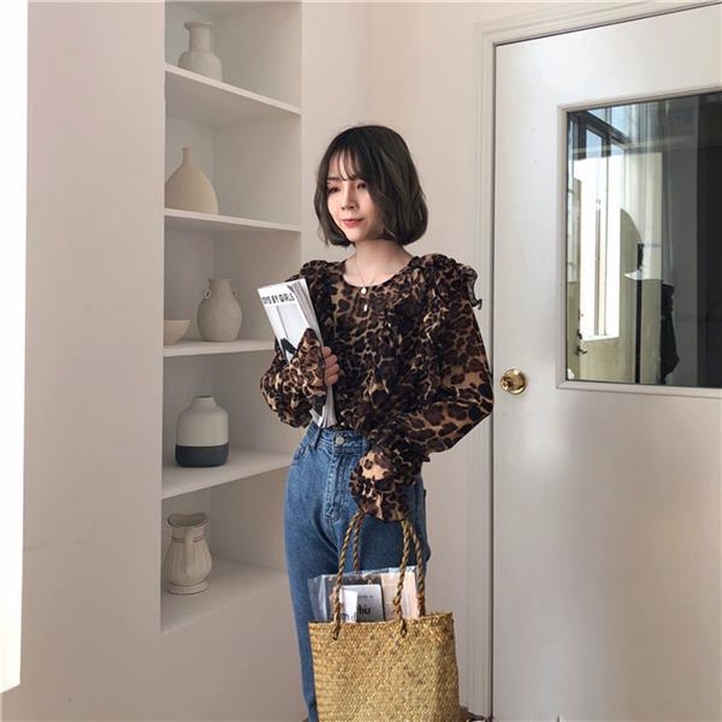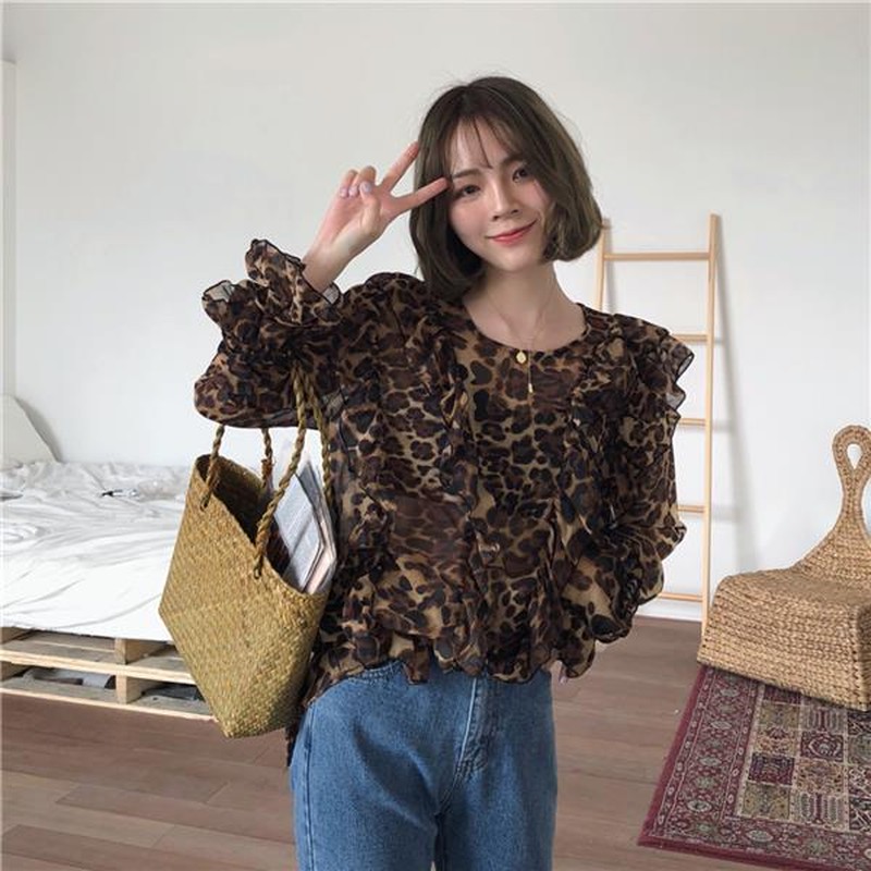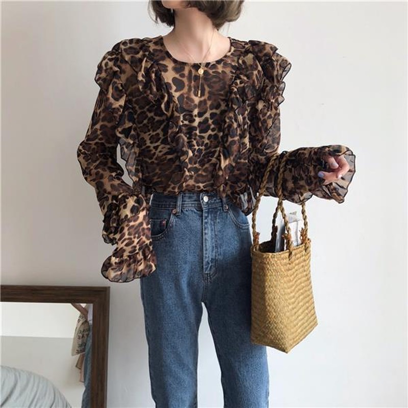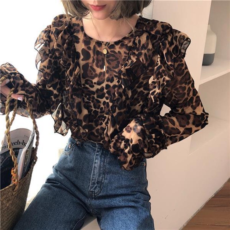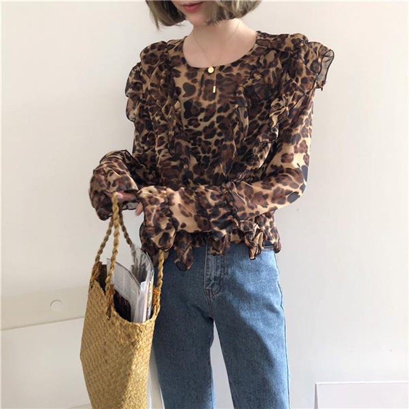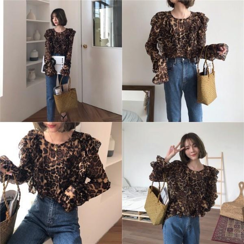 ♢ポイント♢ フリルが可愛いヒョウ柄の長袖ブラウスです。 とろみ素材が大人の抜け感を演出します♪