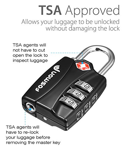 Studio : Fosmon Publisher : Fosmon Binding : Electronics Product Description Lock Your Luggage with Travel Sentry Approved and Transportation Security Administration Approved Locks Keep your luggage and personal belongings safe during travel with a Travel Sentry approved and Transportation Security Administration approved lock. It allows your luggage to be unlocked and inspected by special authorities without damages to your lock or bag. Alert Indicator This unique Fosmon 3-Dial Travel Sentry approved and Transportation Security Administration approved lock features an alert indicator that will turn red if opened by master key, alerting that the bag has been inspected. Durable Material The Fosmon 3-Dial TSA Approved Lock is constructed from sturdy zinc alloy, designed to withstand the rigors of baggage handling. 3-Dial Combination You can set and reset the Travel Sentry approved and Transportation Security Administration approved lock with hundreds of possible combinations making it harder to crack. Multiple Usage This Fosmon 3-Dial Travel Sentry and TSA Approved Lock can be used for travel and also various lockers such as hostels, gym, water parks and etc. for safety and security. Limited Lifetime Warranty Please visit Fosmon website for more details. Package Includes 4x Luggage Lock - Black, Blue, Pink, and Silver - 4 Pack 0