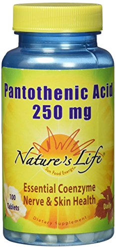 -. Binding : Health and Beauty -. Brand : Nature's Life -. EAN : 0817796025076 -. Feature : Pantothenic acid is an essential B vitamin that acts as a co-enzyme for essential activity throughout the body. / Pantothenic Acid 250 mg from Nature's Life works throughout the body to boost carb, protein and fat metabolism for increased energy. / It also provides support for central nervous system health, hormone regulation and neurotransmitter production. / Pack of 2 / 100 count per pack -. IsAdultProduct : 0 -. Label : Nature's Life -. Manufacturer : Nature's Life -. NumberOfItems : 1 -. PackageQuantity : 1 -. ProductGroup : Health and Beauty -. ProductTypeName : HEALTH_PERSONAL_CARE -. PublicationDate : 2017-01-16 -. Publisher : Nature's Life -. ReleaseDate : 2017-01-16 -. Studio : Nature's Life -. Title : Nature's Life 250 Mg Pantothenic Acid Tablets, 2 Count -. UPC : 817796025076
