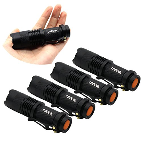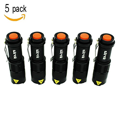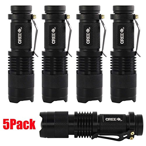 5 Pack SK-68 3 Modes Handheld Mini Cree Q5 LED Flashlight Torch Tactical Lamp 7w 300lm Adjustable Focus Zoomable Light