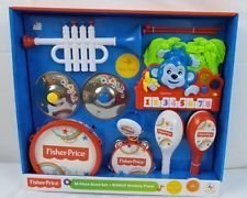 includes: drum with sticks, tambourine, 2 Maracas, trumpet, Castanet and 2 cymbals