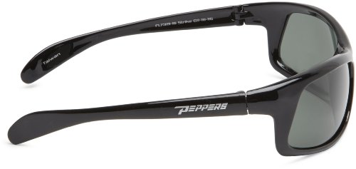 Pepper's Eyewear, style Strike is a sporty rectangular plastic Grilamid polarized wrap that is designed to float in the water. The Strike features a saddle nose bridge and internal hinges for maximum comfort. The Peppers logo is featured on the temples. Peppers Eyewear have polarized lenses which eliminate glare, ensure 100% UVA/UVB protection and provide crisp optical clarity.