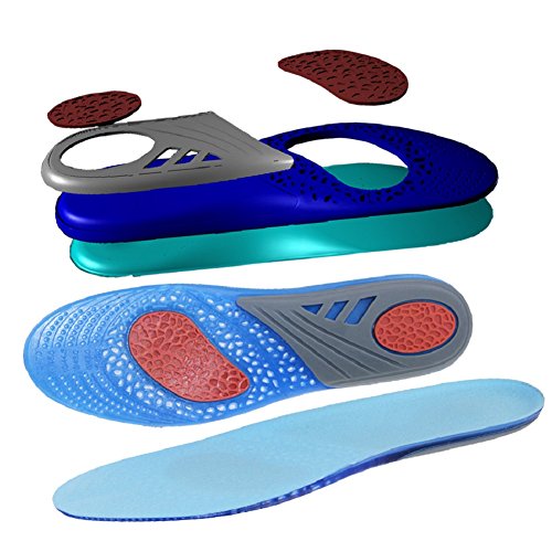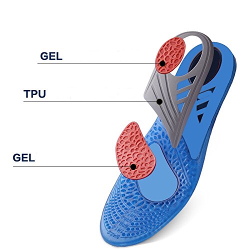 Gel Comfort Massaging Insoles with Arch Support for Walking & Running , Orthotic Insoles for Men & Women (L men's 7.5--14)