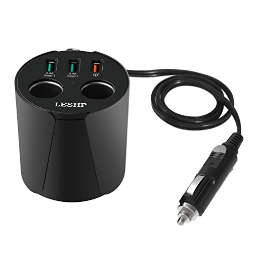 -. Title : Car Cup Charger, LESHP Car Quick Charger Adapter 3.0 with 2-Socket Cigarette Lighter 3 USB Ports for iPhone 7/7 plus/6/6s/6 plus Samsung Galaxy Android Smartphone Tablets