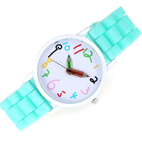 Large dial, clear shilly numbers, pencil pointer, candy-colored strap