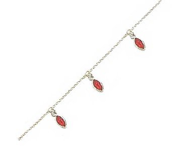 -. Title : Ladies Sterling Silver & Red Crystal Drops Womens Anklet, Adjustable 9 1/2" - 10 1/2"