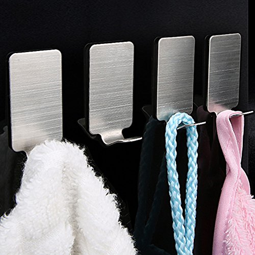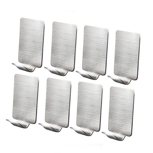 DIRUISHEN 8 Pack Stainless Steel Brushed 3M Self Adhesive Mini Robe Hook Cloth Key Hat Towel Racket Hooks Rustproof Kitchen Utensil (8 Pack Wide hooks)