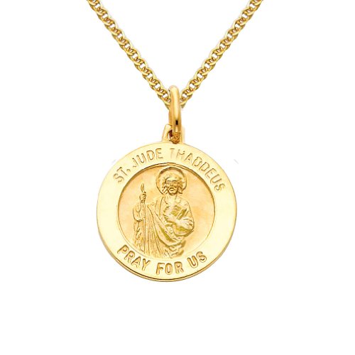 -. Binding : Jewelry -. Brand : GM Fine Jewelry -. Department : womens -. Feature : Pendant Size : 20.5 mm x 20 mm / FREE standard shipping / Will be Shipped Today or Tomorrow / Promptly Packaged with Free Gift Box -. Label : GoldenMine -. Manufacturer : GoldenMine -. Model : PT-0279-CH-0188 -. MPN : PT-0279-CH-0188 -. PartNumber : PT-0279-CH-0188 -. ProductGroup : Jewelry -. ProductTypeName : FASHIONNECKLACEBRACELETANKLET -. Publisher : GoldenMine -. Studio : GoldenMine -. Title : 14k Yellow Gold Religious Saint Jude Thaddeus Medal Charm Pendant with 1.5mm Flat Open wheat Chain Necklace