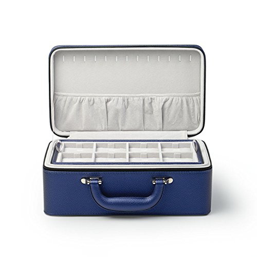 Oirlv Blue Leather Jewelry Box Handmade Travel Jewelry Organizer Storage Case Holder For Girl Lady Earring,Ring,Necklace,Pendant,Watch,Bracelet.(3 layers)