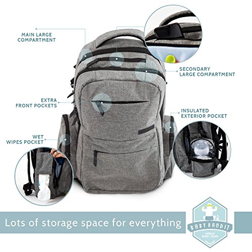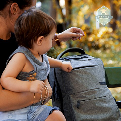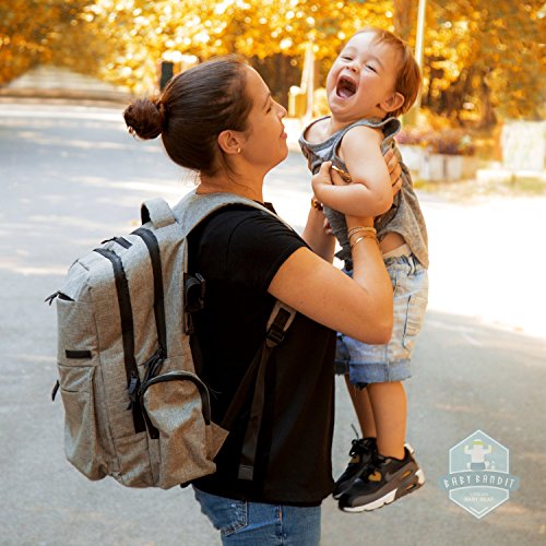 Our story began with a simple wish: to make the perfect products for our families. As parents, we discovered that we couldn't find what we were looking for, a brand that we can trust and rely on, that is how Baby Bandit was born. Your Baby Bandit Diaper Bag was designed for functionality: - Spacious interior compartments with multiple storage pockets for baby's necessities; - Insulated outside and inside pockets with optimized temperature control; - Wipes dispenser with quick access; - Hidden functional secure pockets for wallet and phone; - Padded shoulder straps for increased comfort; - Removable waterproof changing pad; - Travel storage bag/sack for easy carrying; DIMENSIONS: Diaper Bag: 19"H X 16"W X 5.5"D Changing Pad: 23"L X 12"W CARE INSTRUCTIONS: Hand wash only. Do not machine wash. Do not bleach. Do not iron. Do not dry clean. Use a damp cloth to spot clean. 0 |