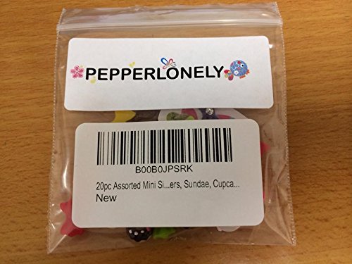 PEPPERLONELY Brand 20pc Assorted Mini Size Bows, Bee, Panda, Cake, Chocolate, Monsters, Sundae Nail Tip Decals