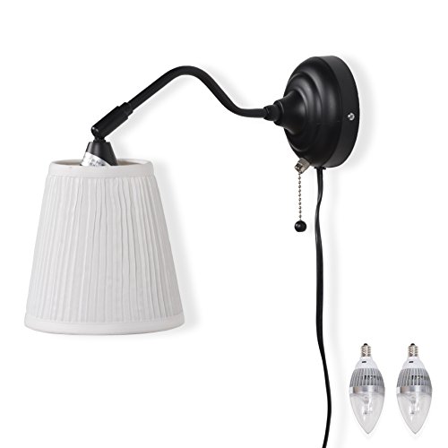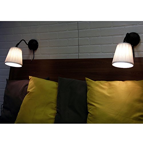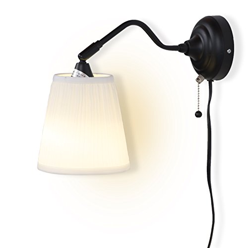 Dimensions: Depth: 15 " Shade diameter: 6 " Cord length: 8 ' 2 " Wall plate/ Arm: Steel, Black Finish Shade: 100 % polyester.