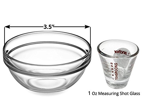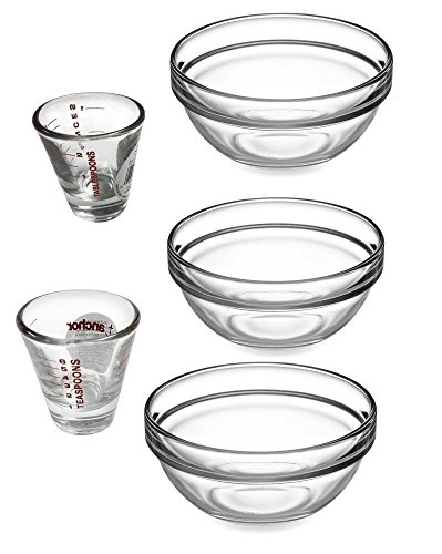 SPECIAL VALUE PACK - 3 Mini glass bowls (3.5”x1.5”) and 2 Measuring shot glasses (1 Oz each)