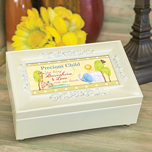 Precious Child Sunshine & Love Cream Pearlescent Jewelry Music Box Plays Tune- Brahms Lullaby