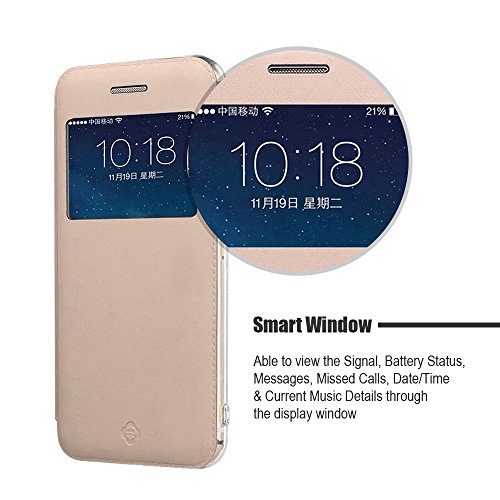 XY014 iPhone 6 Plus Case, [Starry Series] [View Window] Folio Flip PU Leather Case [Attractive Design], Case for iPhone 6 with Stand [Ultra Fit] --5.5 inch (Beige)