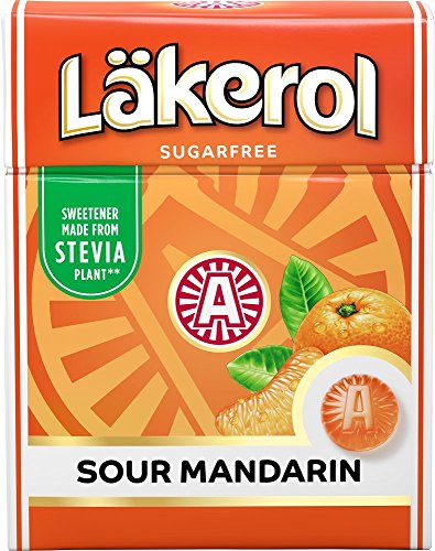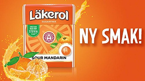 -. Feature : Läkerol Sour Mandarin / Sugar Free pastilles with sour mandarin flavor / Sweetener from Stevia plant / Package includes 4 individual 0,88 oz packs / Made in Sweden