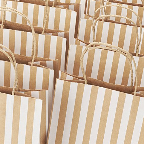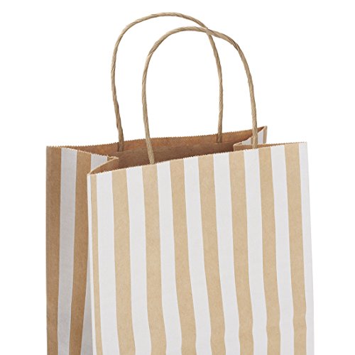 Halulu 8"x4.75"x10" - 50 Pcs - Brown Kraft Shopping Grocery Mechandise Paper Stripe Gift Bags