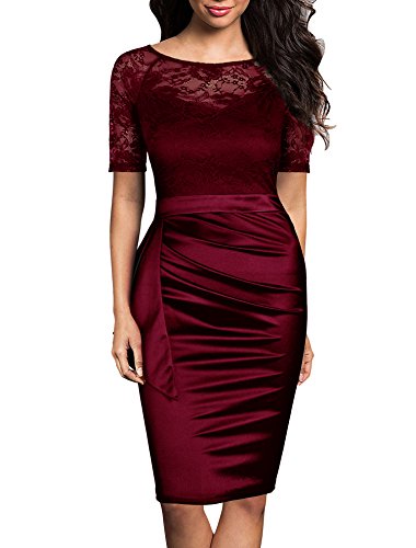 Mmondschein Women's Vintage Ruffles Short Sleeve Business Pencil Cocktail Dress