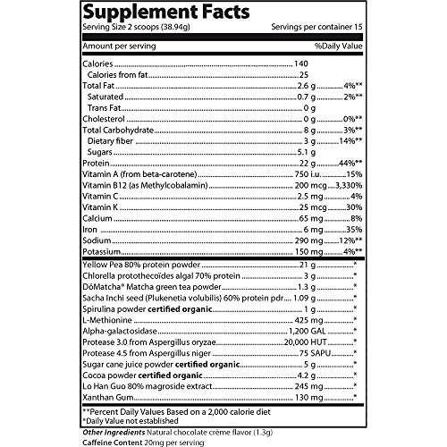 WHOLE FOOD PROTEIN + MATCHA TEA: DoMatcha, the brand of Matcha we use in Pro Matcha protein is the world's most expertly produced and respected brand of Matcha tea. In addition to this, Algal, Sacha Inchi, Yellow Pea, and Spirulina provide 21 grams of protein. This strong protein combination curbs hunger, provides Omega 3,6,9 fatty acids (in proper ratios), detoxifies, is low in carbs, boosts immunity, and is easily absorbed.