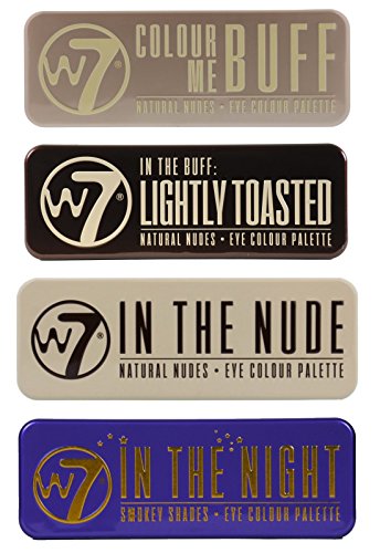Studio : W7 Publisher : W7 Binding : Health and Beauty Product Description This W7 'Natural Nudes' and 'Smokey Shades' set includes FOUR gorgeous, 12 in 1 eyeshadow kit tins, each with a double sided brush! Get jaw dropping looks without the eye popping price. You'll find mostly comparable colors to the Naked1 (Lightly Toasted), Naked2 (In The Buff) and Naked3 (In The Nude) in this kit, plus a rich and versatile smoky palette! A gorgeous spectrum of colors and finishes from rose-hued neutrals and deeper tawny bronzes, to soft and sumptuous smoky shades and beautiful shimmery violets. The colors blend together charmingly and they don't settle around the crease or the corners of your eye like a lot of cheaper palettes do. 0