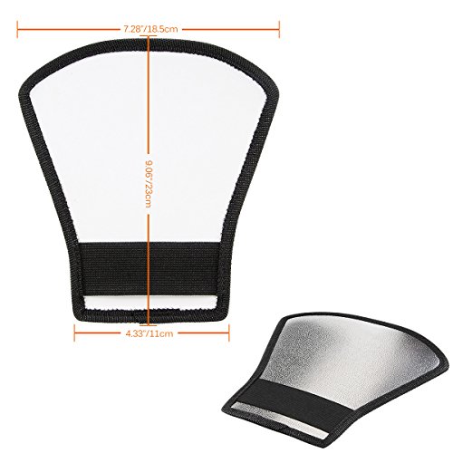 The large size bend positionable reflector is easily customized to your flash needs, it adapts to many positions and uses such as a snoot, flag or bounce card. The neutral white reflector provides a soft light for portraits.