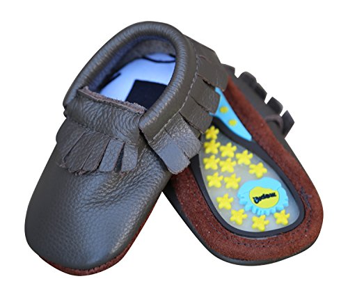 Binding : Apparel Product Description The classic moccasin never goes out of style and with our baby moccasins your little one will be decked out in show stopping cuteness! Perfect for boys and girls, just choose the color that suits your style. These moccasins can be worn anywhere from a play date to a dinner date. With the durable high quality leather, they will work great for little walkers and are made to last. The soft soles and elastic openings make them easy to put on and take off so your little one will love these as much as you do! Perfect for infants and toddlers alike. 0