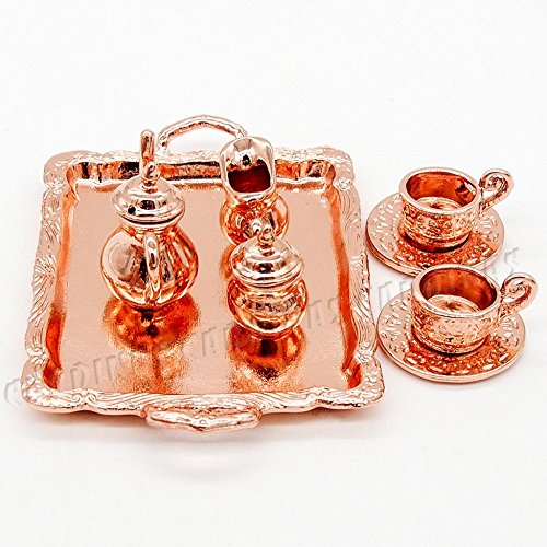 -. Title : Odoria 1:12 Miniature 8PCS Vintage Copper Tea Cup Coffee Serving Set Dollhouse Kitchen Accessories