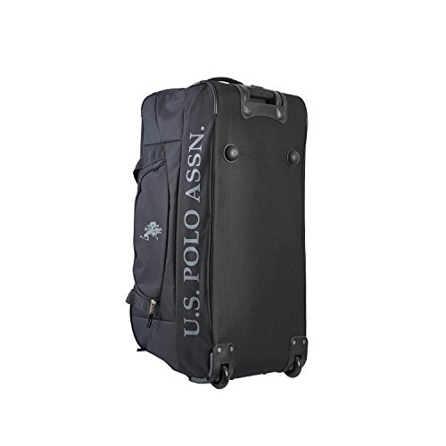 -. Binding : Apparel -. Brand : U.S. Polo Assn. -. Department : unisex-adult -. Feature : Official US polo association duffel bag. / Unique duffle bag that is mobile on rear mounted skate wheels for hassle-free transport in the gym or busy terminals. / Single stage trolley handle expands when needed for steering lage, and collapses when not in use. / 13.75x30x13 / This official US polo association duffel bag combines finesse with functionality. It is mobile on rear mounted skate wheels for hassle-free transport in the gym or busy terminals and a single stage trolley handle expands when needed for steering lage it includes a large center compartment that is spacious and ready for everything you need while on the go. A front panel zipper compartment lets you have easy access to items while out and about, while a rear zipper compartment provides interior flex capacity for additional items. A zipper compartment with organizer is emblazoned with the official U. S. Polo assn logo. Lower piping guards help protect the lage from bumps and dents while moving about. -. Label : Concept One Lage and Backpack -. Manufacturer : Concept One Lage and Backpack -. PackageQuantity : 1 -. ProductGroup : Apparel -. ProductTypeName : LAGE -. Publisher : Concept One Lage and Backpack -. Studio : Concept One Lage and Backpack -. Title : U.S. Polo Assn. 30in Deluxe Rolling Duffle Bag, Retractable Handle