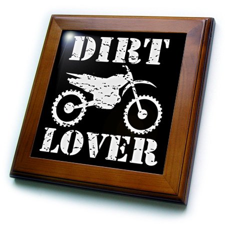 3dRose ft_180550_1 White Image & Dirt Lover Text with Distressed Dirt Bike Graphics Framed Tile, 8 by 8"