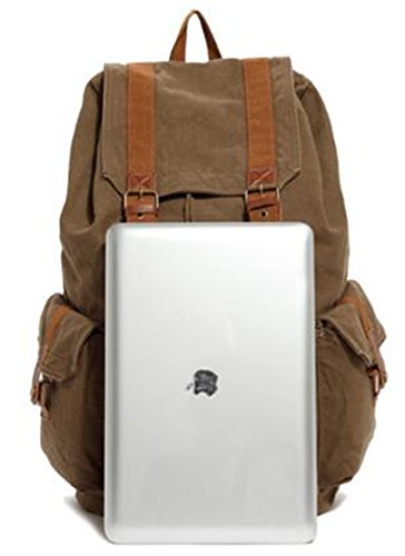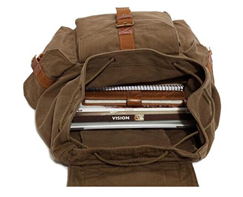 -. Feature : COMPARTMENT - Two side pockets, one front pocket, one large compartment with two small compartments inside. / MAIN COMPARTMENTS - The spacious main compartment with drawstring closure under flap and high quality zipper head offers plenty of space to hold a number of things such as books, tablet, camera or other important belongings for all day use conveniently. / MATERIAL - Leather trims and zips, straps and durable canvas fabrics. Made with premium quality high density durable canvas fabric and PU leather, this sturdy bag features a classic yet stylish button closure flap over design, vintage brass hardware accents, adjustable and comfortable shoulder straps, and multiple pockets to keep you organized.School bags main flap features magnetic closures to facilitate quick and easy access.
