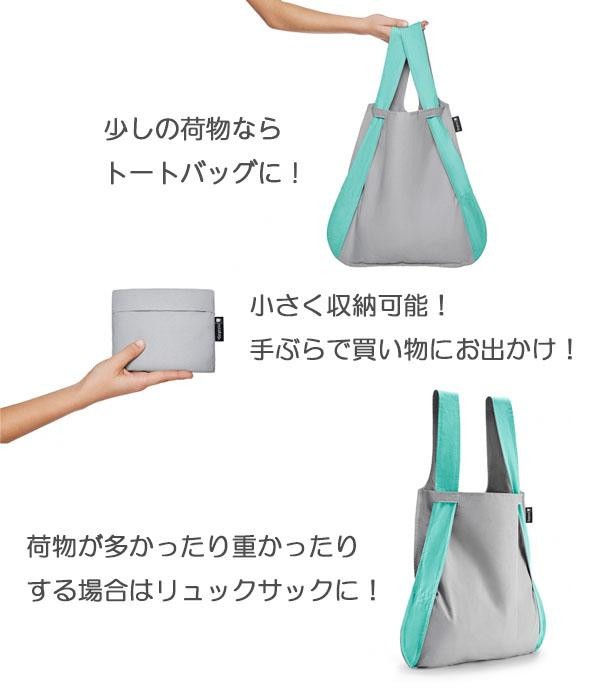 | ストラップを引っ張るだけで、トートバッグにもリュックサックにもなるファッショナブルなポータブルバッグ。折りたたんで小さく収納することができるので、自転車で出かけた際などに便利です!行きはポーチサイズにして買い物へ出かけ、少しの荷物ならトートバッグに、荷物が多かったり重かったりする場合はリュックサックにするなど、状況に合わせた使い分けが可能です。 |