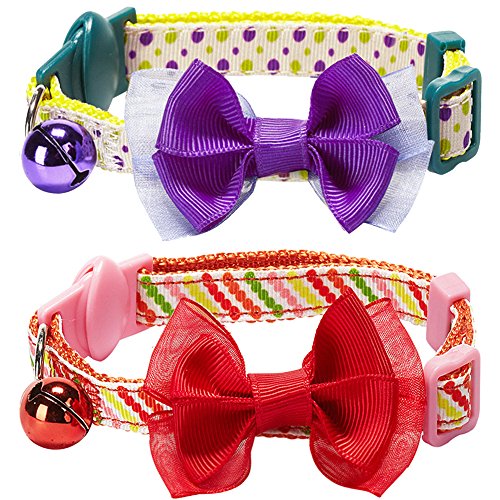 -. Title : Blueberry Pet Doppelpack Klare Tupfen & Streifen Verstellbares Breakaway Katzenhalsband mit Fliege & Glöckchen