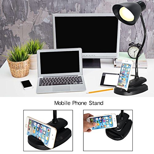 2 in 1 Stand & Clip Design - It can stand on desk with its own anti-skid base just like common lamps, meanwhile built with a phone stand holder (NOT for phone charging), you can enjoy your movie under warm lighting atmosphere. Or you can take off the base to clips to headboards, desks and tables to provide a stable light source wherever you need.