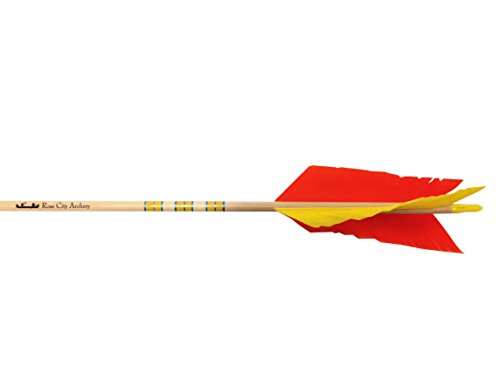 Rose City Archery Port Orford Cedar Hunter Flu-Flu Arrows (12-Pack), Clear Lacquer Shaft, 5/16-Inch Diameter/Less Than 30-Pound Spine