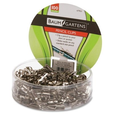 Baumgartens Pencil Clips, For All Standard Size Pencils, 100/DS, Silver