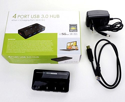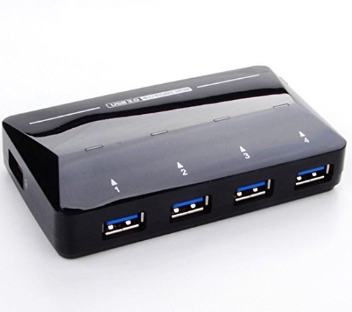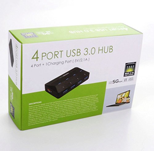 -. Feature : Smart Charging Port - Comes with 2 extra port for fast charging of mobile phones, IPAD, Android devices, Samsung Galaxy, offering quick charges of devices up to 2.4A, 5V charge input / 4 SuperSpeed ports delivering transfer speed of up to 5Gbps (Note: actual rate will depend on the capability of your device). Backward compatible with USB 2.0 / 1.1. / LED indicators for each USB 3.0 ports, Built in Power On/Off blue switch, / Supports plug-and-play and hot-swapping. No installation of drivers required for Windows XP / Vista / 7 / 8 or Mac OS X 10.2 and above.