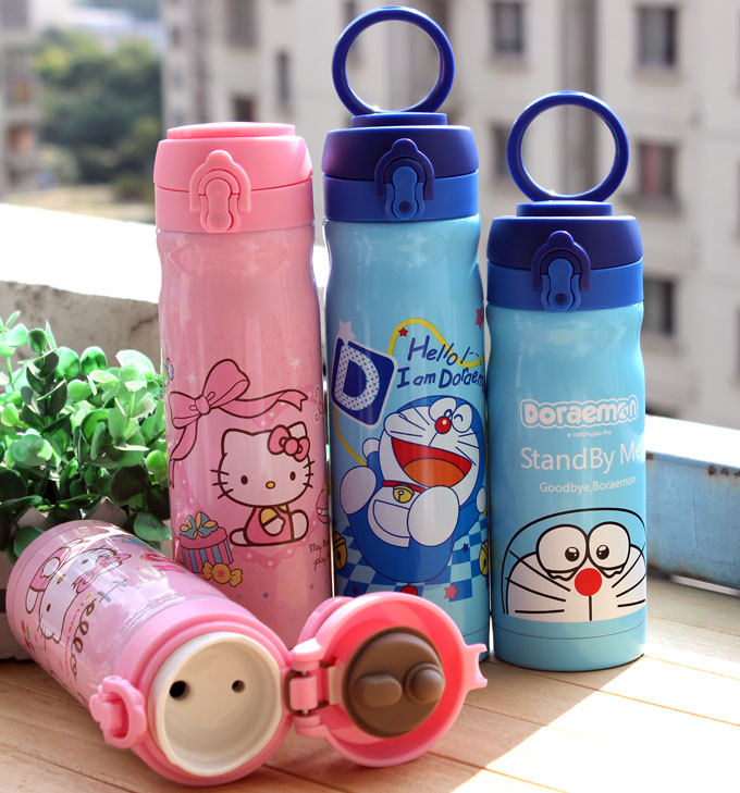 可爱卡通kitty叮当不锈钢学生水杯水壶儿童女士创意弹跳保温杯子