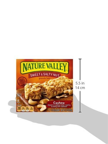 -. Binding : Misc. -. Brand : Nature Valley -. EAN : 0016000168930 -. Feature : Six packs of 6 bars each, that's 36 bars! / Sweet and salty nut granola bars dipped in cashew butter coating bursting with cashews / Gives your body a burst of energy to help keep you pedaling or paddling and provides a wholesome treat for your taste buds in one perfect bar. -. IsAdultProduct : 0 -. Label : Nature Valley -. Manufacturer : Nature Valley -. PackageQuantity : 20 -. ProductGroup : Grocery -. ProductTypeName : GROCERY -. Publisher : Nature Valley -. Studio : Nature Valley -. Title : Nature Valley Sweet & Salty Granola Bars, 1.2 Ounces (Pack of 6) -. UPC : 016000168930