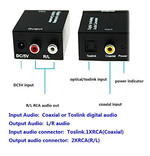Studio : Monodeal Publisher : Monodeal Binding : Electronics Product Description Note: This DAC Adapter Only Support 2.1 Channel, Not for 5.1 Channel Features: Converts coaxial or toslink digital audio signals to analog L/R audio and connects to an external device such as an amplifier via standard RCA jacks. Supports uncompressed 2-channel LPCM digital audio signal output. Supports sampling rate at 32, 44.1, 48, and 96 KHz 24-bit S/PDIF incoming bit stream on left and right channels. Provides electromagnetic-noise-free transmission. Compact size, easy to install and simple to operate. Specification: Output Audio: L/R audio, 3.5mm jack Input Audio Connector: 1 x Toslink, 1 x RCA (Coaxial) Output Audio Connector: 2 x RCA(R/L) Color: Black Package Includes: 1 x Digital to analog audio converter 1 x Toslink cable (Optical cable) 1 x USB power cable 1 x User manual 0