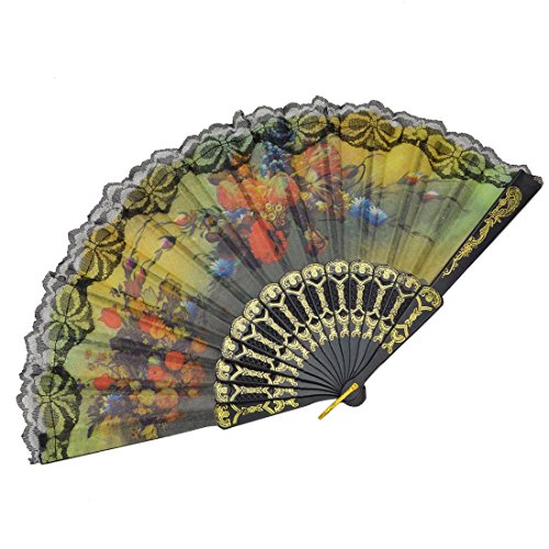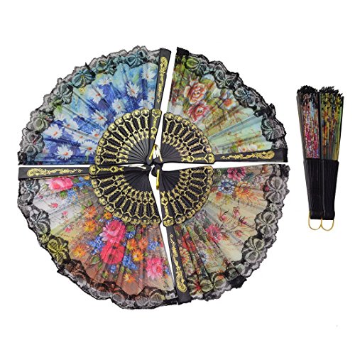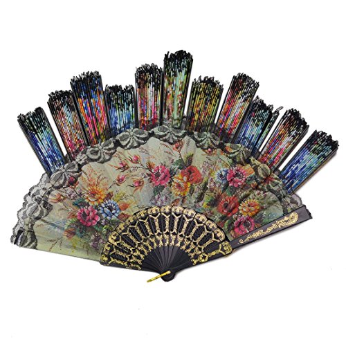 Windspeed Spanish Women Floral Folding Hand Fan Size 9" Pack of 10 Pieces Random Color