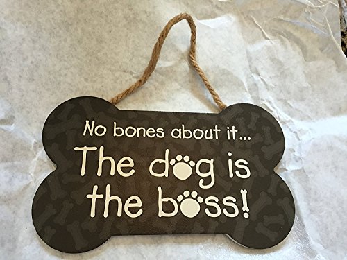 Bone-Shaped Wood Sign with Rope - "No Bones About it...The Dog is the Boss!"