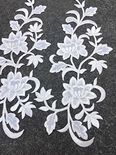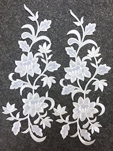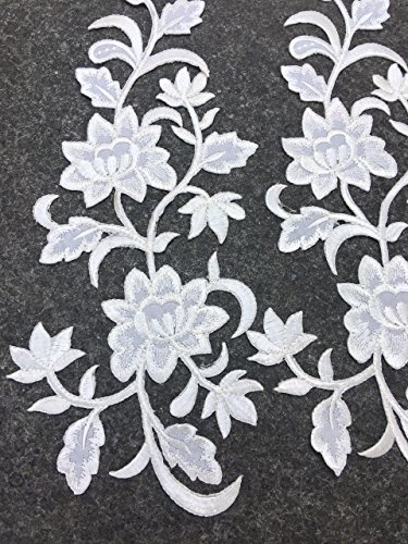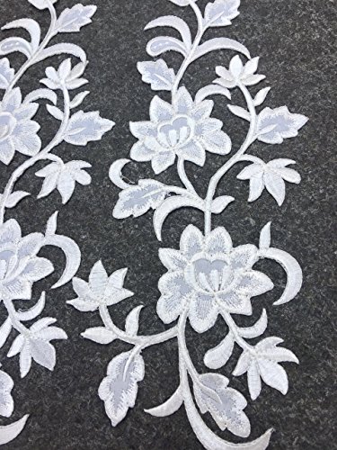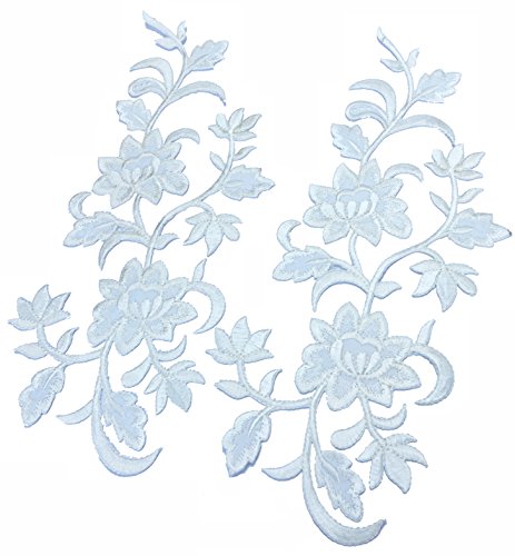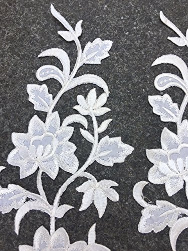 Two Big Flower Iron on Embroidered Appliques Patch Embroidered Lace Fabric Ribbon Trim Neckline Collar (White)