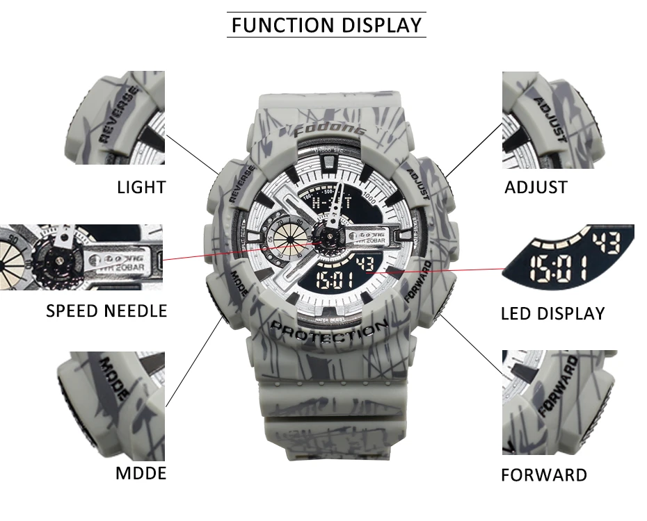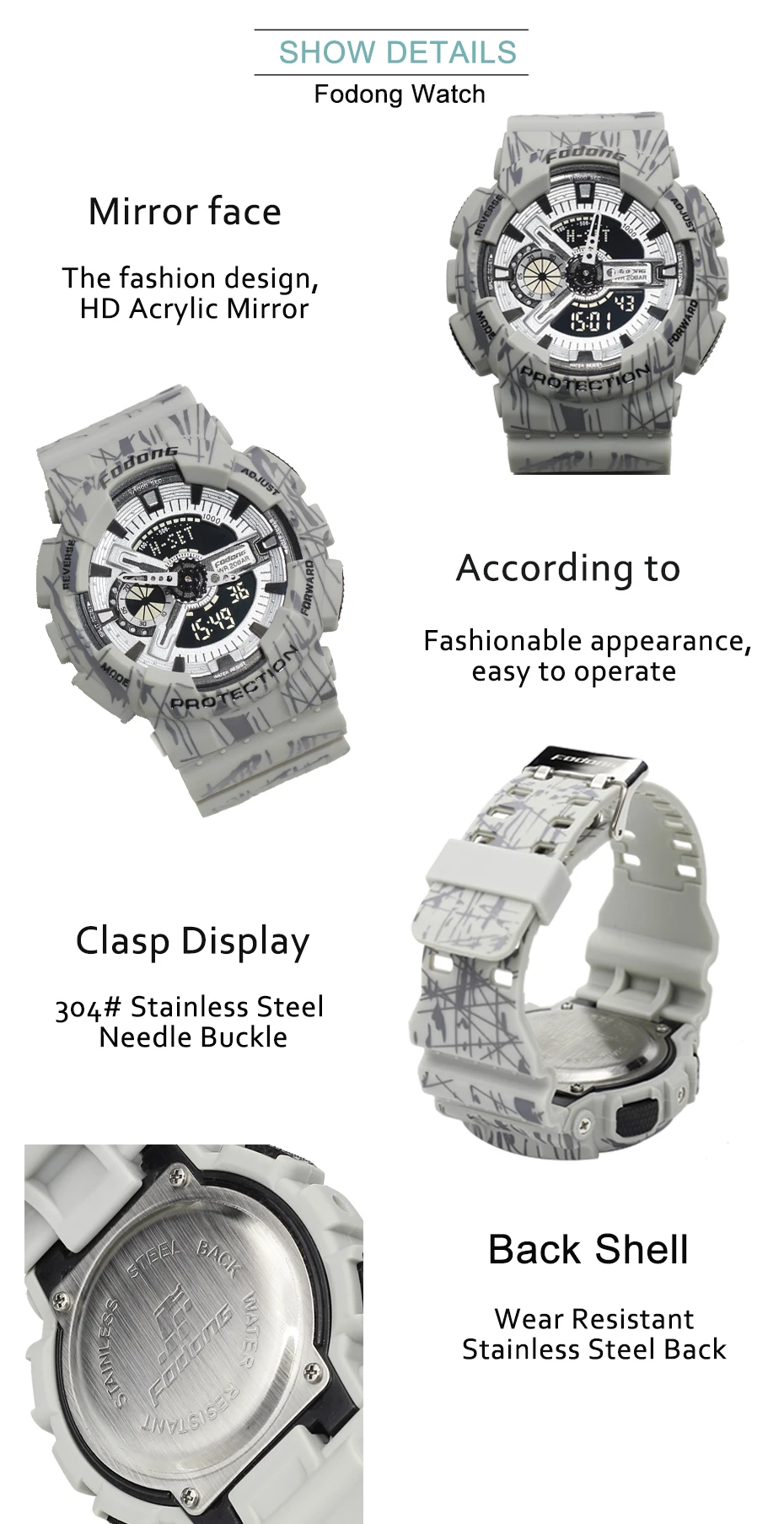 | [해외] 2017 Fodong 최신 패션 듀얼 디스플레이 여성 시계 고무 방수 스포츠 남성 시계 주도 Relogio Masculino 디지털 |