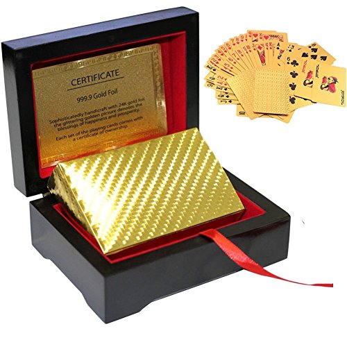 - Waterproof 24K Gold Foil Playing Cards General Printing Tablet Card Games Pokers With Black Wooden Box