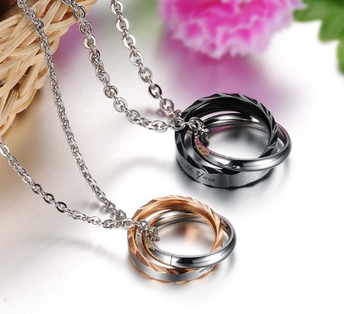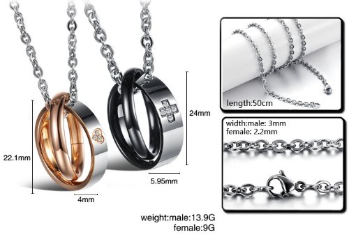 -. Title : JewelryWe ネックレス メンズ レディース 1ペア(2個) カップル 愛の証に,リング,ジルコニア ダイヤ,ステンレス,クリスマス バレンタイン プレゼント