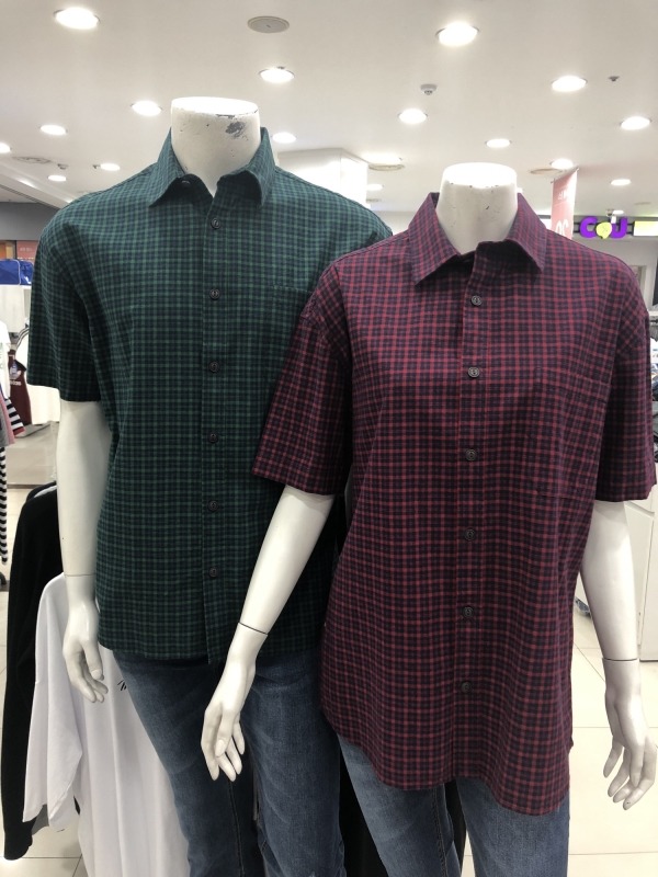 유니) 스몰 체크 반팔 셔츠