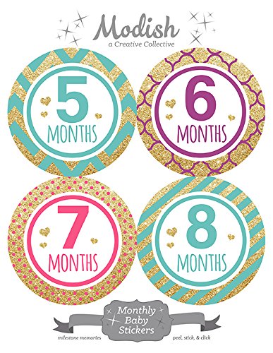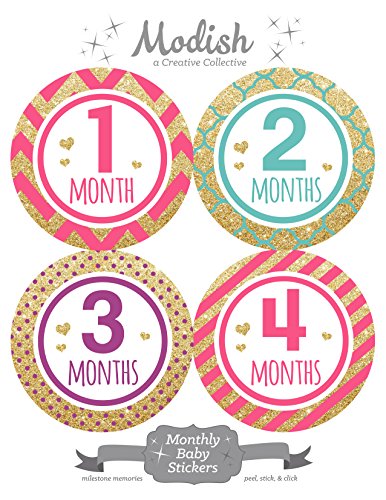 -. Title : 12 Monthly Baby Stickers, Gold Glitter {Faux}, Pink, Purple, Teal, Baby Girl, Baby Belly Stickers, Baby Month Stickers, First Year Stickers Months 1-12, Chevron, Stripes, Polka Dots, Quatrafoil Glamour, Fashion