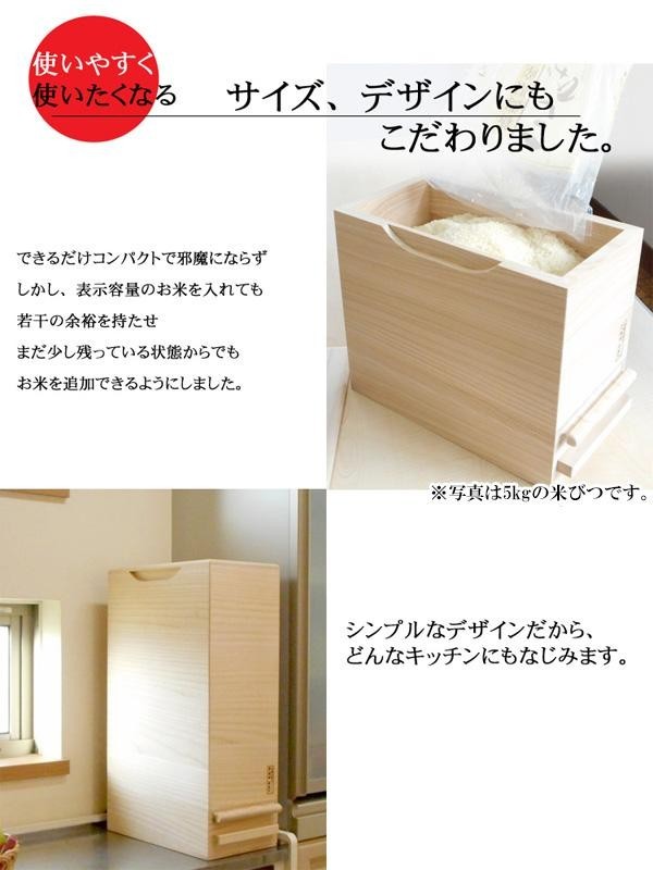 シンプルなデザインで、どんなキッチンにもなじむ桐製の米びつです。通気性が良いので、お米をおいしいまま保存できます。